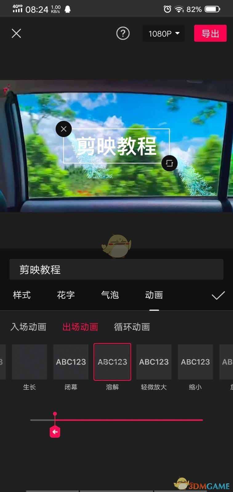 5、最后给片头文字,添加动画,添加出场动画里的溶解效果,调整动画时长。让动画的开始和粒子的消散同步进行即可。