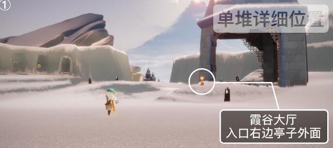 第一根蜡烛在霞谷大厅,入门口右边的亭子外面,具体位置如下图所示;