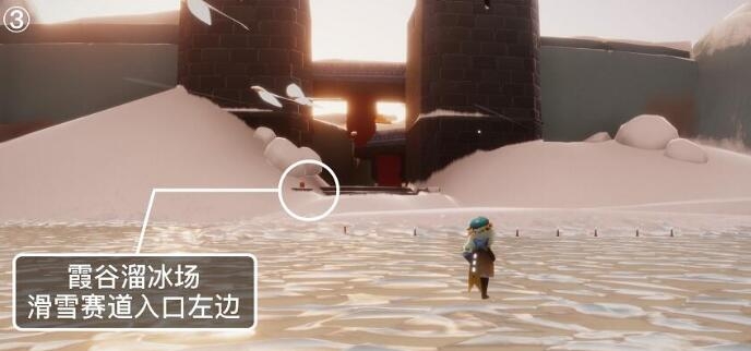 第三根蜡烛在霞谷溜冰场的滑行赛道入口左面,具体如下图所示;