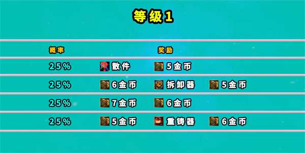 2、玩家在通关第一层时可以获得金币,拆卸道具以及散件的奖励。