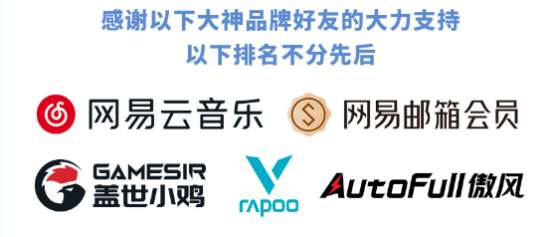合作品牌:网易云音乐、网易邮箱、傲风、雷柏、盖世小鸡