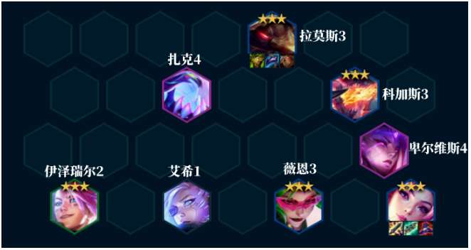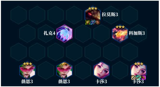 适用情形:卡莎体系中最常规的阵容玩法羁绊组成:4怪兽 4情报特工
