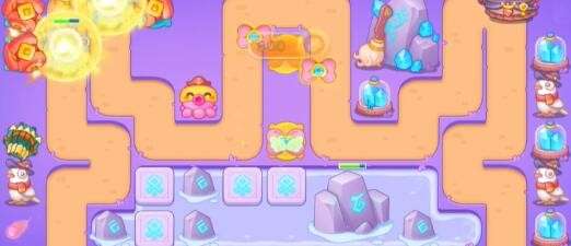 1、保卫萝卜4阿波与魔法宝藏14关主要使用鞭炮和章鱼炮台这两个炮台。