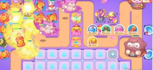 3、在传送口建造三个鞭炮炮台并升级,中间建造一个蝴蝶结。