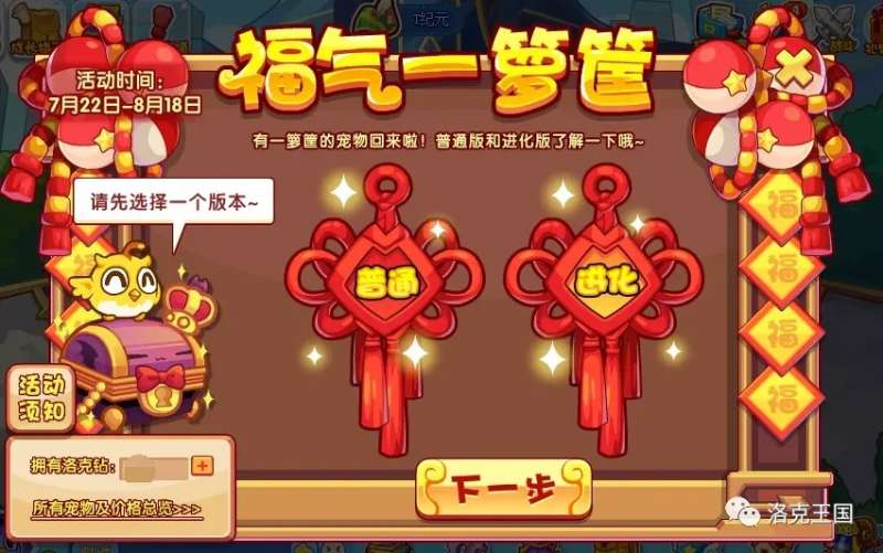 本次活动提供普通和进化两个版本。普通版即直接获得宠物。进化版即需要准备满级上阶宠物进化获得。会先获得进化资格,后再进行进化。其中会有一些条件和门槛,请看清楚界面上的说明哦~