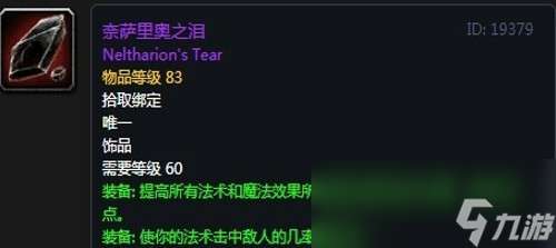 奈萨里奥之泪:饰品1,出自黑翼之巢副本奈法利安掉落,无法附魔。