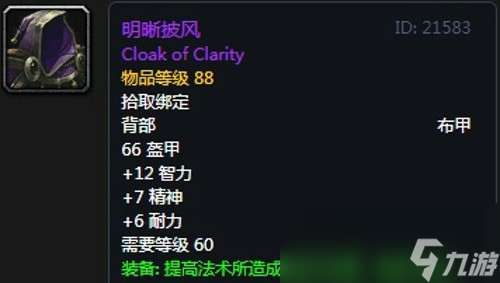 明晰披风:披风,出自安其拉副本克苏恩掉落,推荐附魔狡诈。