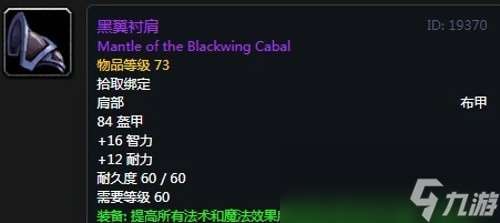 黑翼衬肩:肩甲,出自黑翼之巢副本狂野的拉佐格尔掉落,推荐附魔多彩黎明衬肩。
