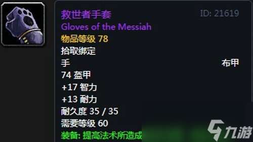 救世者手套:手套,出自安其拉副本哈霍兰公主掉落,推荐附魔治疗能量。