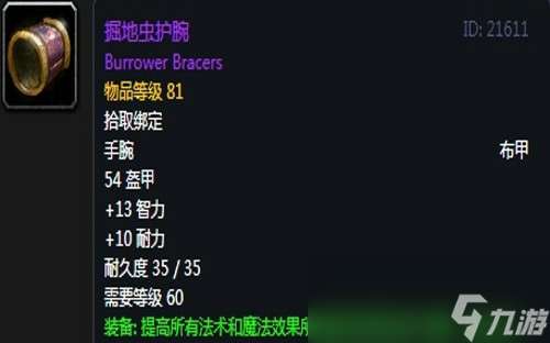 掘地虫护腕:护腕,出自安其拉副本奥罗掉落,推荐附魔法力回复。
