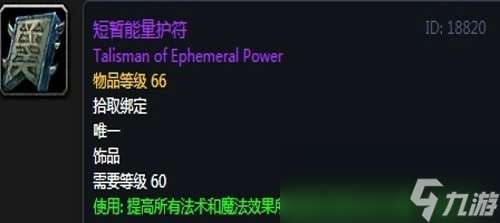 短暂能量护符:饰品2,出自熔火之心迦顿男爵,玛格曼达,焚化者古雷曼格,加尔掉落,无法附魔。