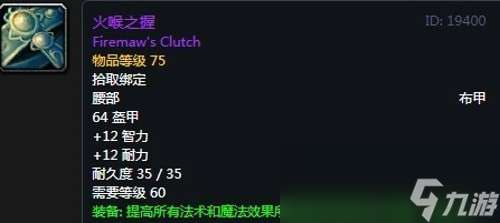 火喉之握:腰带,出自黑翼之巢副本费尔默掉落,无法附魔。