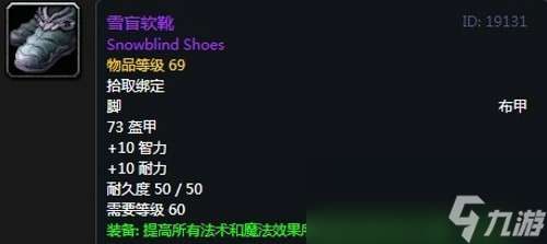 雪盲软靴:脚部,出自艾萨拉世界BOSS 艾索雷葛斯掉落,推荐附魔初级速度。