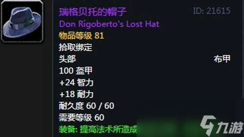瑞格贝托的帽子:头部,出自安其拉副本奥罗掉落,推荐附魔预言的光环。