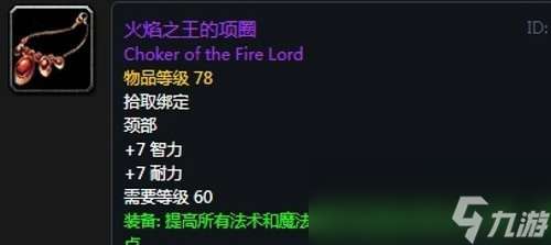 火焰之王的项圈:项链,出自熔火之心副本拉格纳罗斯掉落,无法附魔。