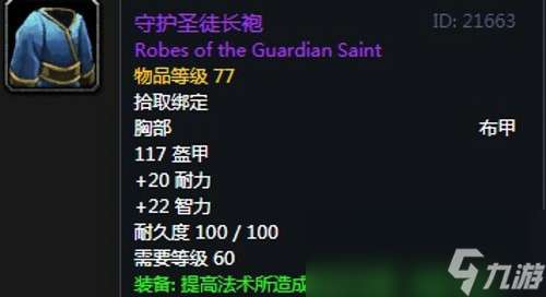 守护圣徒长袍:胸甲,出自安其拉副本顽强的范克瑞斯掉落,推荐附魔强效属性。