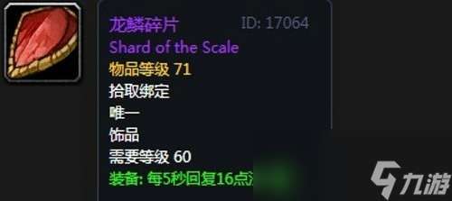 龙鳞碎片:饰品2,出自奥妮克希亚掉落,无法附魔。