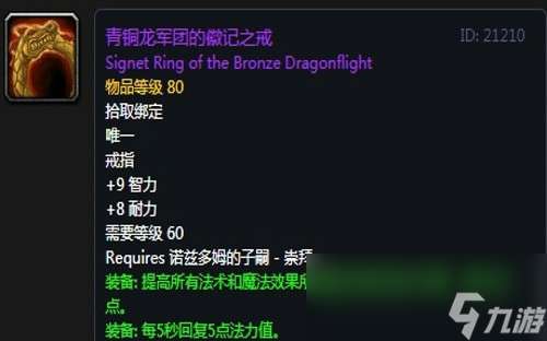 纯源质指环:戒指1,出自黑翼之巢副本奈法利安掉落,无法附魔。