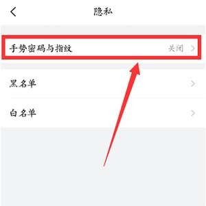 第四步:在隐私设置的页面中,可以看到手势密码和支付的功能选项,点击进入到设置页面中,如图所示。