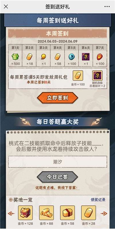 6月7日问题:桃式在二技能抓取命中后释放子技能____,会后撤并使用水龙卷持续攻击敌人?