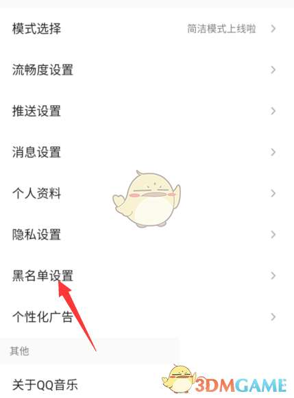 3、最后点击QQ音乐黑名单选项,查看黑名单即可完成。