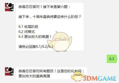 恭喜忍忍答对所有题目!,这是您的礼包码:更加宏大的盛典高潮