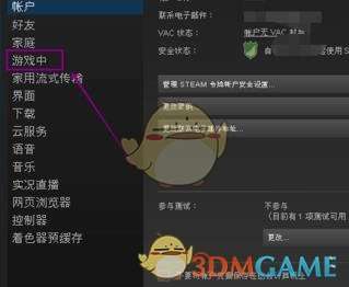 2、选择“游戏中”