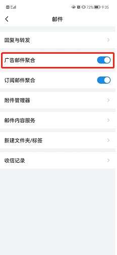 5、最后将【广告邮件聚合】关闭即可完成,如图所示。