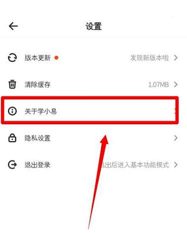 第三步:直接在设置界面中点击关于学小易(如图所示)。