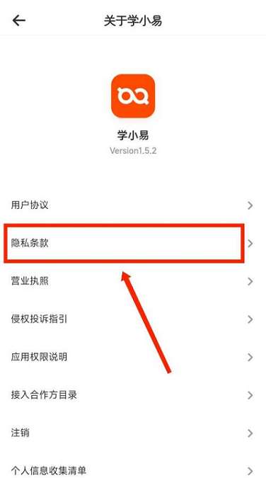 以上就是小编给大家带来的学小易如何查看隐私条款的全部内容,希望本文内容能帮助到大家!