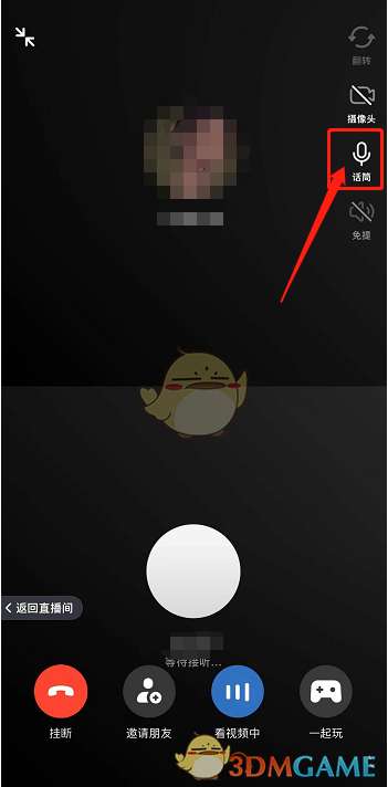 3、进入一起看直播后,点击右侧的“话筒”图标即可关闭。