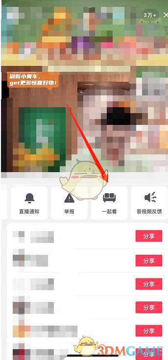 1、首先在抖音直播页面长按,就会弹出许多功能,点击“一起看”。
