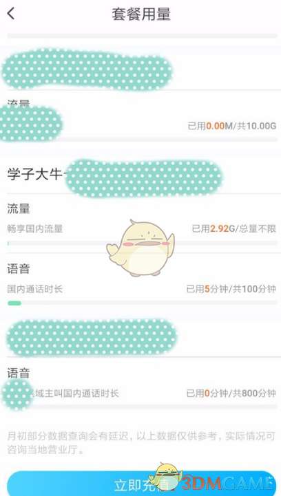 4、然后就能查看相应的套餐使用情况了哦!