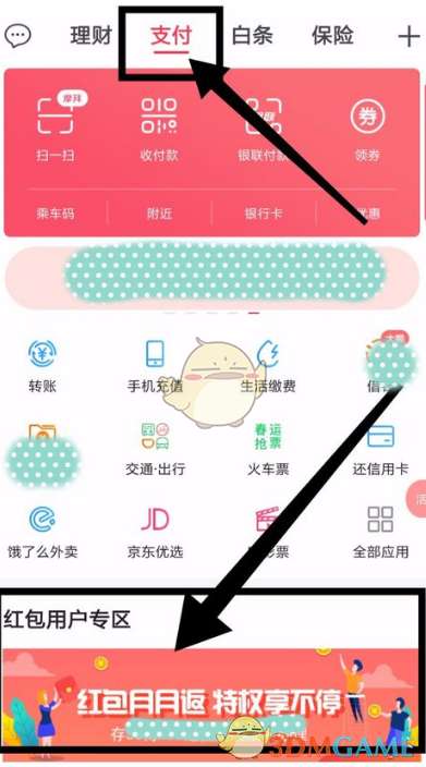 1、打开翼支付app,然后在“支付”页面点击打开“红包用户专区”。