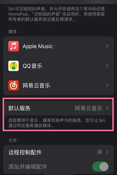 2、选择【默认服务】,点击需要默认使用的音乐播放器即可。