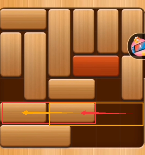 第二步:将第五排的两个横向的积木均往左边推(如图:)