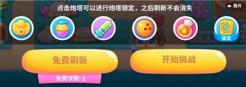免费刷新机会有2次,点击炮塔可以进行炮塔锁定,之后刷新不会消失。
