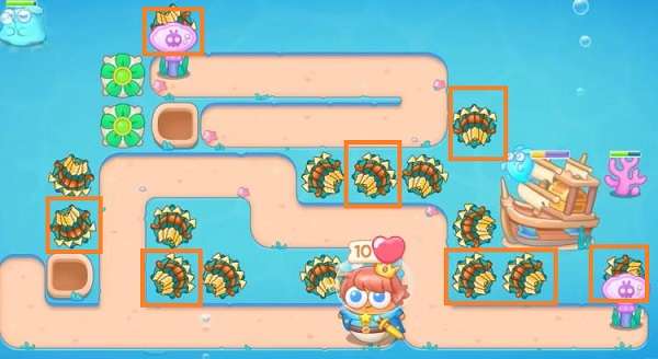 4、第5波基本就能做到道具全清,沿路的地方增加多重箭,火力拉满。