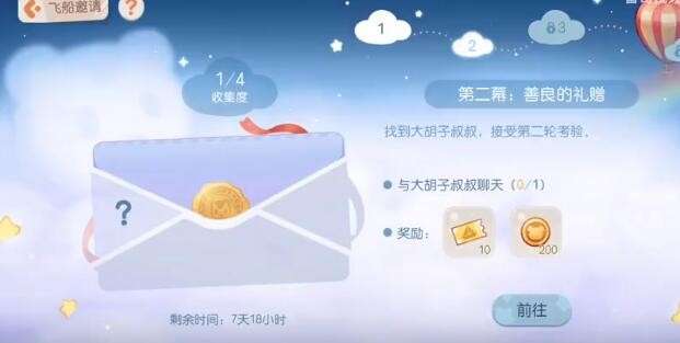 1、进入到活动页面可以看到第二幕的任务:善良的礼赠,点击接受任务;