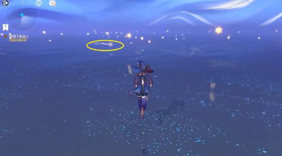 寻找一颗在水面上游泳的特殊星星。它出现的位置似乎是随机的,耐心找找...可以用元素视野看看。