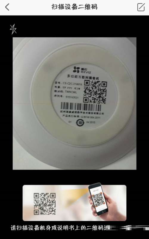点击页面中间的“ + ”,就会跳下面的扫描二维码的界面,用手机扫描摄像机机身或说明书上的二维码