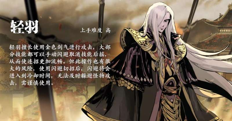 左殇的另一个转职路线是轻羽,相较于无锋,轻羽的上手难度就要高出许多了。他的技能虽然强力,但是都有着极其致命的后摇,但好在玩家可以通过闪避来取消后摇,实战当中比较看个人手法,不然白白的浪费闪避功能,会导致自身陷入险境,无法逃离。轻羽的技能核心在于一剑三绝,剑幕和鼓影噬心和四十级才能解锁的剑雨,伤害也同样很高。并且由于轻羽技能多段的施法特点,配合上焚天烈火,蛇眼这些心法的效果,还可以进一步强化实战能力,由于每一段攻击都有几率触发这些装备的关联技能,所以打出来的几率自然大于其他的职业。