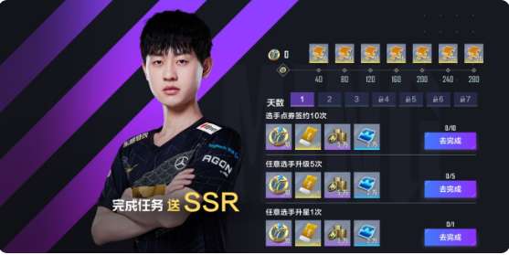 突破生涯里程碑,即可获得1名强力SSR( TheShy、 369、Doinb、Scout任选其一);完成宝典任务也能获得1名SSR中单(Rookie、knight、Angel 、Doinb、Scout任选其一)。