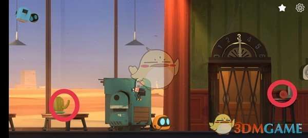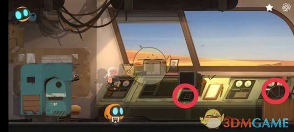 第五关,控制艾彼把那个小车车推到左边,像图中的位置和方向(艾彼站在哪一边按交互按钮车就会像哪一边动);然后换成迪迪,可以改变空调风的方向向上