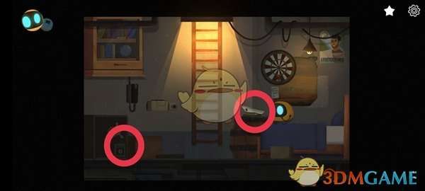 走到这个房子艾彼进去,把叶子揪下来,然后踩在沙发上跳上去爬上绳子,就可以把机器人打到救下吉米了