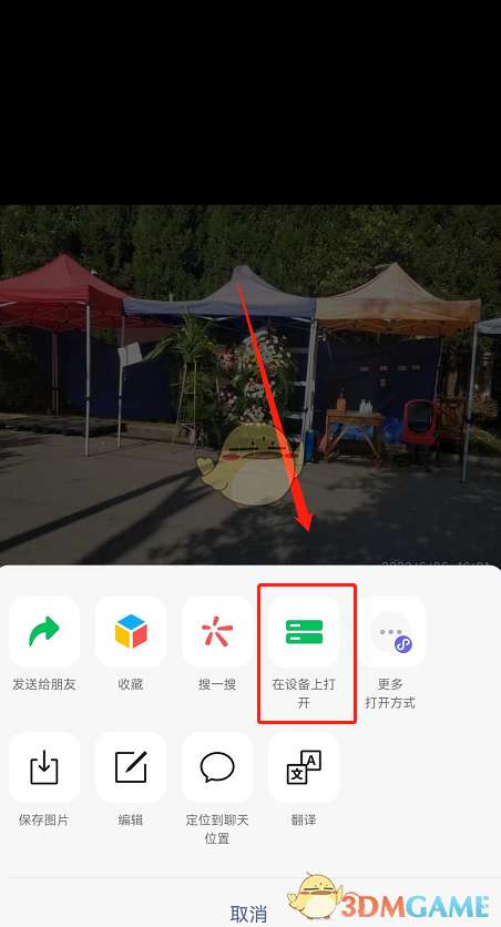 2、这时就可以看到下方多了一个【在设备上打开】功能,点击一下。