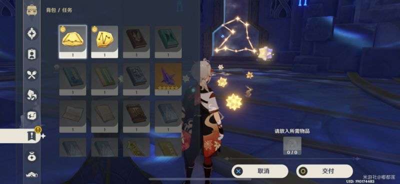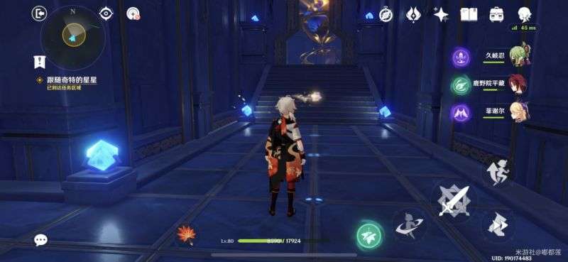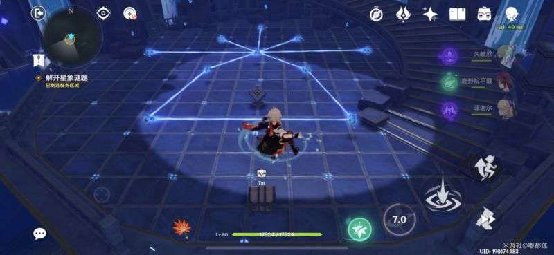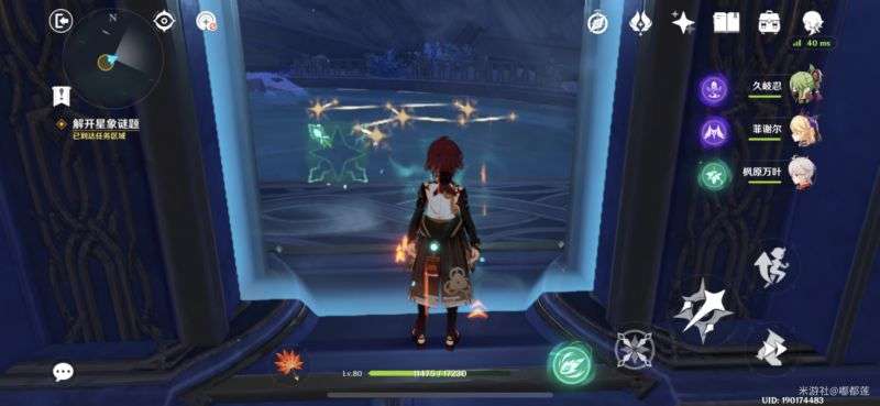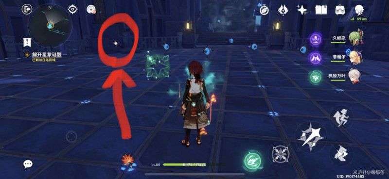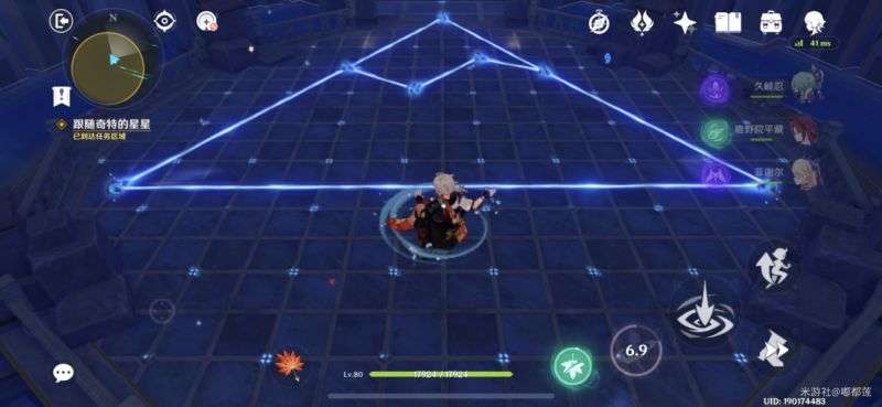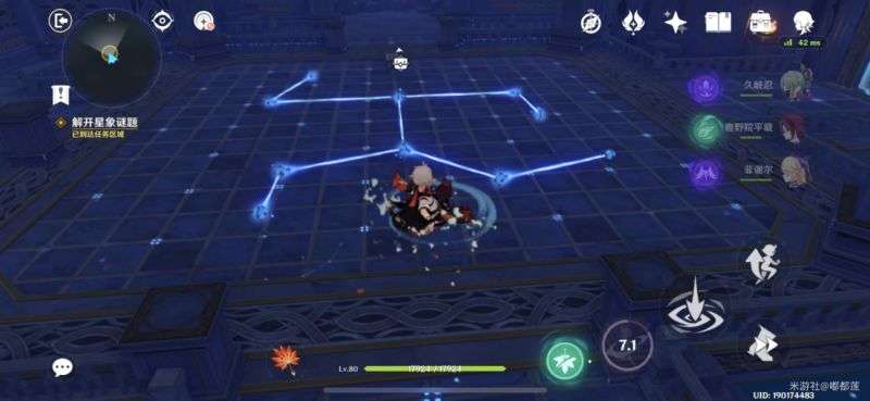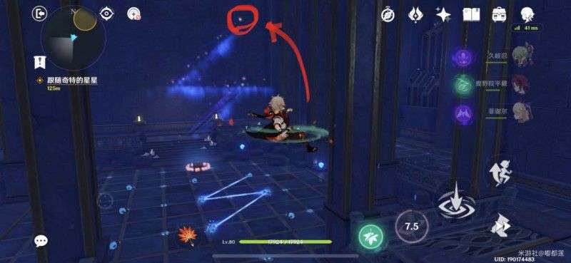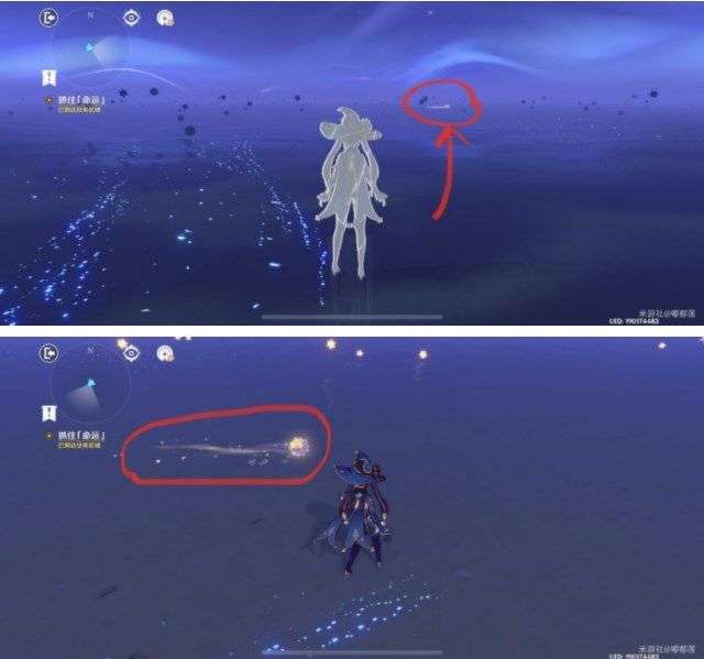 之后的任务较为简单,唯一值得注意的是,在“抓住命运”中,没有任何提示。解开的要点在于:场景里几百颗上下沉浮的星星中,有一颗小星星是随机漂移的,这颗小星星有拖尾特效,并且可以用元素视野发现。但场地很大,如果运气倒霉,角色离星星很远,那么开元素视野就发现不了。