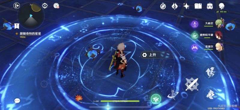 捡星星后,星星引导角色回到中央,并出现圆形法阵,点击一次上升: