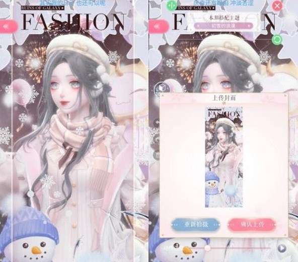 首先大背景方面的设计非常的重要,一定要选择冷色调为主的大背景,突出寒冷和冬日浪漫的那种环境,宫殿或者街道都可以,有一种浪漫的约会的气息和氛围就完美了。贴纸什么的无脑糊雪花和雪人等等冬季非常具有特色和代表性的物件就行,不过不推荐糊圣诞方面主题的装束,虽然说不算跑题,但是有点违和。