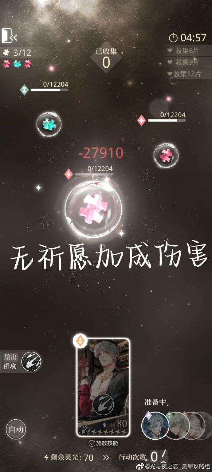 [分析]:增益就是同男主上阵卡面伤害提升,效果出现在第一轮和第三轮。对于查理苏卡多开花多的很有用,建议上阵时放在同男主第一位,利益最大化。